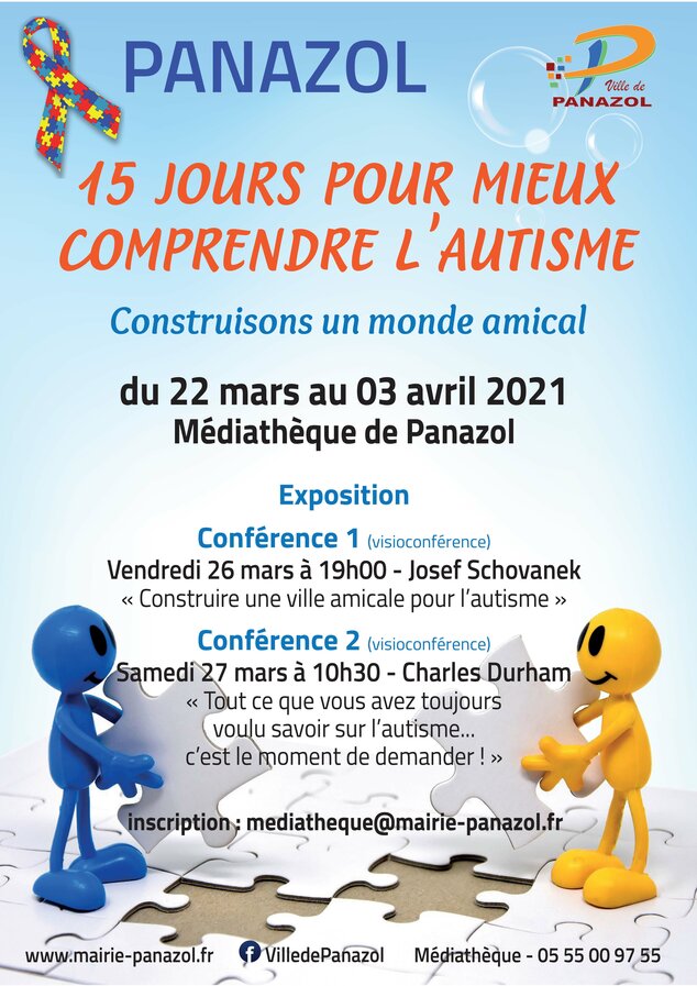 Visioconférence vendredi 26 mars à 19h00 par Joseph Schovanek « Construire une ville amicale pour l’autisme »