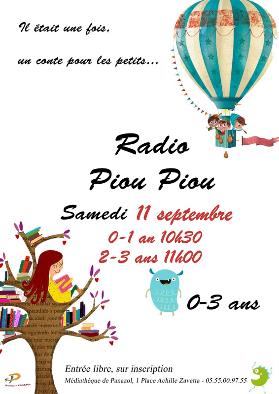 Radio Piou Piou Publié le 8 septembre 2021 par médiathèque de panazol Samedi 11 septembre à 10h30 et 11h Partager : Cliquer pour partager sur X(ouvre dans une nouvelle fenêtre) X Cliquez pour partager sur Facebook(ouvre dans une nouvelle fenêtre) Facebook J’aime chargement…