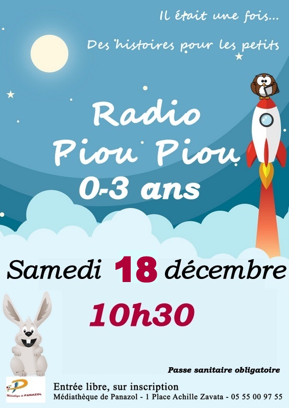 Radio PiouPiou Publié le 10 décembre 2021 par médiathèque de panazol Samedi 18 décembre à 10h30 Sur inscription auprès de la Médiathèque au 05-55-00-97-55 Partager : Cliquer pour partager sur X(ouvre dans une nouvelle fenêtre) X Cliquez pour partager sur Facebook(ouvre dans une nouvelle fenêtre) Facebook J’aime chargement…