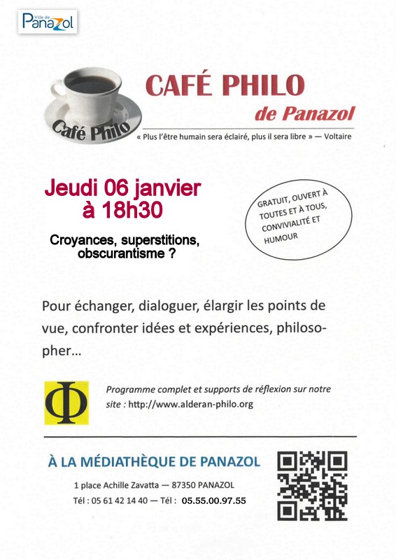 Prochain Café philo Publié le 29 décembre 2021 par médiathèque de panazol Jeudi 6 janvier à 18h30 – Fermeture de la Médiathèque à 20h30 Partager : Cliquer pour partager sur X(ouvre dans une nouvelle fenêtre) X Cliquez pour partager sur Facebook(ouvre dans une nouvelle fenêtre) Facebook J’aime chargement…