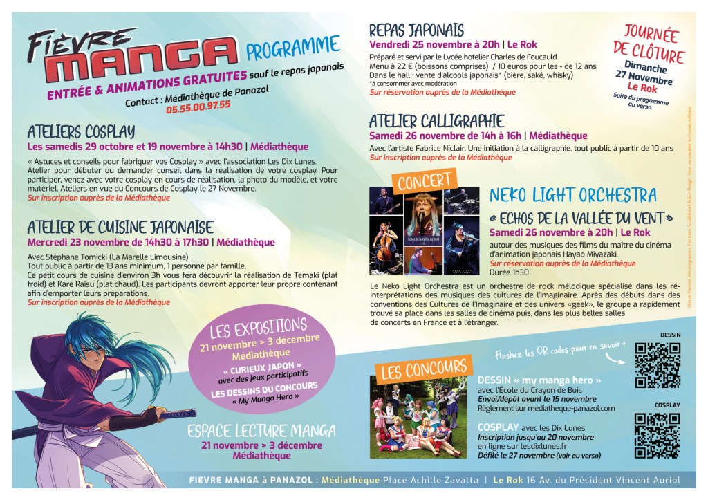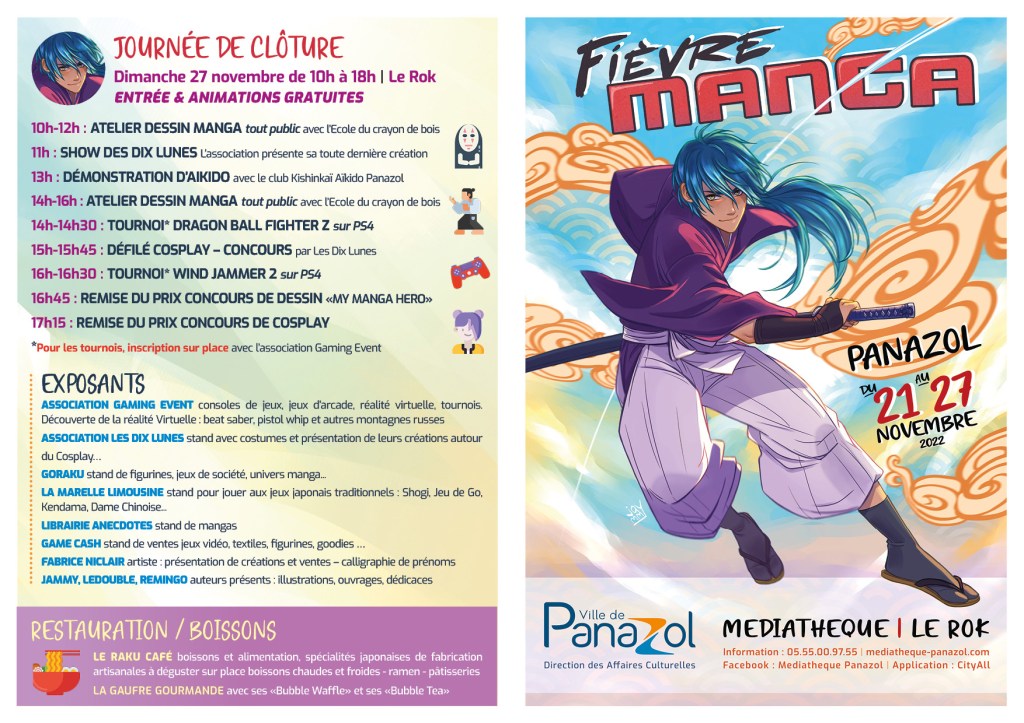 Découvrez tout le programme de la Fièvre manga Publié le 26 octobre 2022 par médiathèque de panazol A ne pas manquer ! Inscriptions et renseignements au 05-55-00-97-55 Partager : Cliquer pour partager sur X(ouvre dans une nouvelle fenêtre) X Cliquez pour partager sur Facebook(ouvre dans une nouvelle fenêtre) Facebook J’aime chargement…