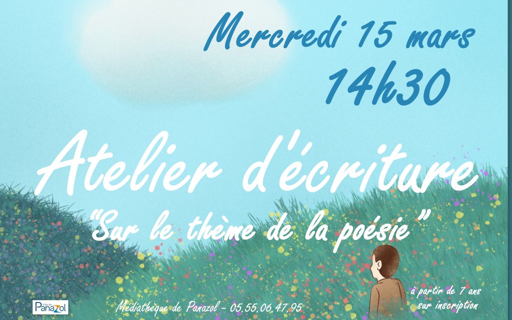 Atelier d’écriture à partir de 7 ans Publié le 13 mars 2023 par médiathèque de panazol Mercredi 15 mars à 14h30 Atelier d’écriture proposé aux enfants dès 7 ans, gratuit sur inscription Partager : Cliquer pour partager sur X(ouvre dans une nouvelle fenêtre) X Cliquez pour partager sur Facebook(ouvre dans une nouvelle fenêtre) Facebook J’aime chargement…