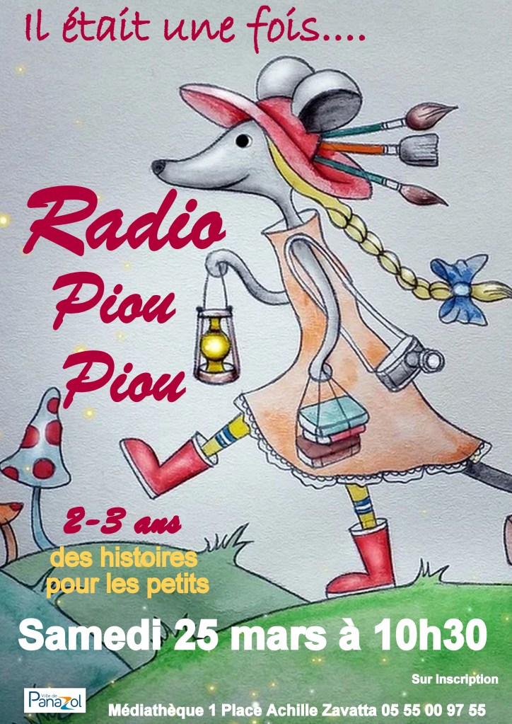 Radio PiouPiou 2-3 ans Publié le 22 mars 2023 par médiathèque de panazol Samedi 25 mars à 10h30 Gratuit sur inscription Partager : Cliquer pour partager sur X(ouvre dans une nouvelle fenêtre) X Cliquez pour partager sur Facebook(ouvre dans une nouvelle fenêtre) Facebook J’aime chargement…