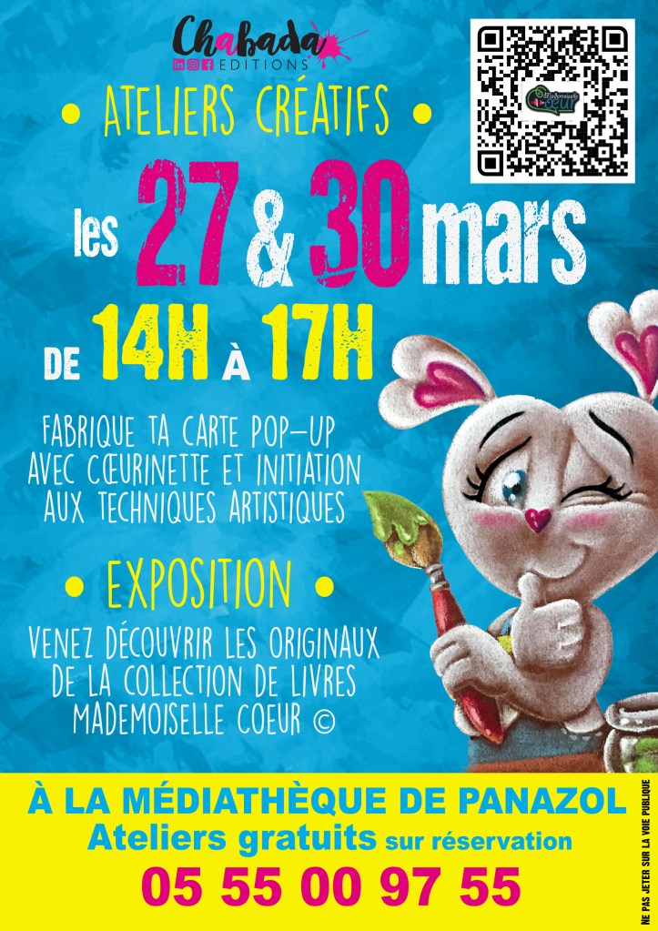 Ateliers de la Quinzaine de l’autisme, à partir de 3 ans Publié le 25 mars 202425 mars 2024 par médiathèque de panazol Sur inscription auprès de la médiathèque au 05-55-00-97-55 A partir de 14h, les mercredi 27 et samedi 30 mars, des ateliers bricolage seront animés par Chabada. Les enfants à partir de 3 ans seront bienvenus. Ces ateliers seront suivis d’un petit goûter et d’une séance de dédicace. Partager : Cliquer pour partager sur X(ouvre dans une nouvelle fenêtre) X Cliquez pour partager sur Facebook(ouvre dans une nouvelle fenêtre) Facebook J’aime chargement…