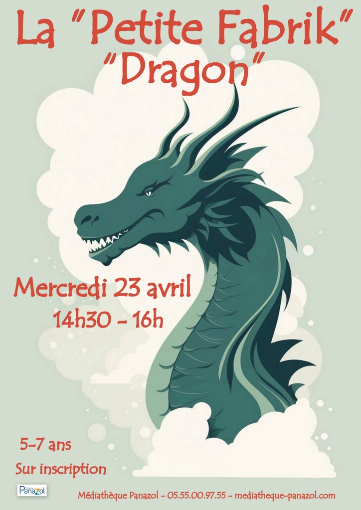 Atelier « La petite Fabrik » spéciale Dragon Publié le 8 avril 2025 par médiathèque de panazol Mercredi 23 avril à 14h30 Fabrique ton dragon. Atelier manuel pour enfants de 5 à 7 ans, sur inscription auprès de la médiathèque au 05-55-00-97-55 Partager : Cliquer pour partager sur X(ouvre dans une nouvelle fenêtre) X Cliquez pour partager sur Facebook(ouvre dans une nouvelle fenêtre) Facebook J’aime chargement…