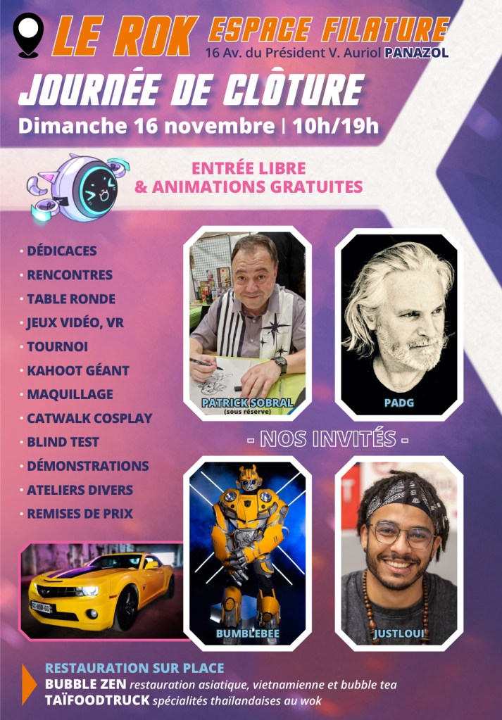 Tout le programme de la Fièvre Manga 5ème édition à découvrir ici ! Publié le 18 octobre 202518 octobre 2025 par médiathèque de panazol Grande journée de clôture dimanche 16 novembre au RoK de 10h à 19h Entrée gratuite Partager : Cliquer pour partager sur X(ouvre dans une nouvelle fenêtre) X Cliquez pour partager sur Facebook(ouvre dans une nouvelle fenêtre) Facebook J’aime chargement…