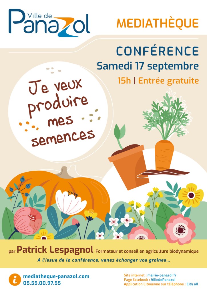 Patrick Lespagnol, formateur et conseiller en agriculture biodynamique animera une conférence sur les semences.